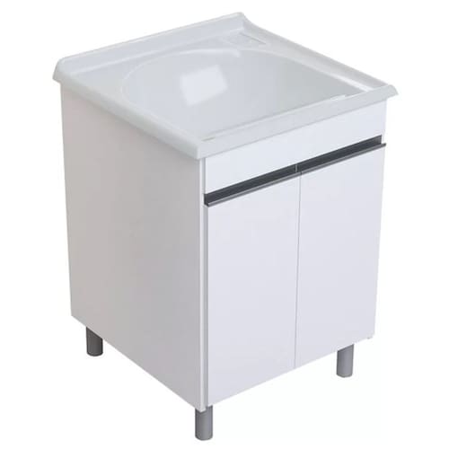 O armário acondiciona tanque simples de 60cm se encaixando de ambientes menores até os mais amplos, além de possibilitar o armazenamento de produtos junto ao tanque.