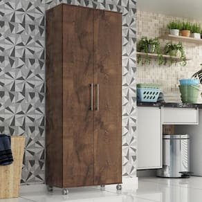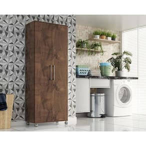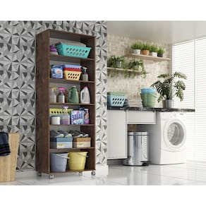 Lavanderia Manuela | Com 2 portas, prateleiras internas, dobradiças metálicas, puxadores modernos e rodízios faz da Lavanderia Manuela um móvel próprio para pessoas exigentes com organização. Fabricada em MDP de 15mm nas portas e MDP 12mm para prateleiras, laterais e tampos. Suporta pesos de até 8kg em suas prateleiras e 15kg no tampo suficiente para acomodar diversos itens domésticos como detergentes, baldes, sabão em pó, pano de limpeza, esponjas, entre outros. Seu maior diferencial são os rodízios que facilitam a movimentação do produto para limpeza. Além desses detalhes é de fácil montagem