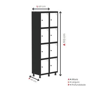 Armário Locker Guarda-roupa 8 Portas Aço Grp 502/8 Preto/Branco
