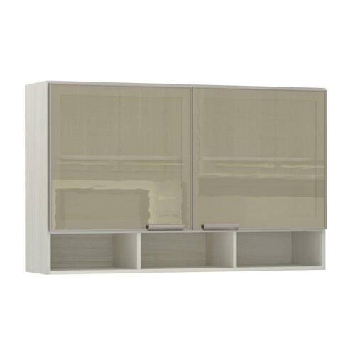 Características: Corpo/Caixaria: MDP Legno Crema FF. Frontais: Vidros Miniboreal Temperado. Dobradiças: Ø35 mm. Puxadores: Alumínio Gola Champagne. Prateleiras: 2 Portas: 2 Itens inclusos: Manual de montagem, ferragens e acessórios.