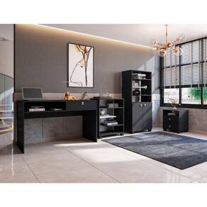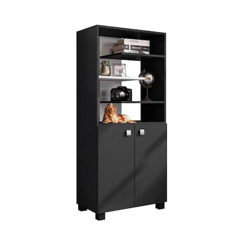 Armário Luna Para Escritório Multiuso 4 Prateleiras 2 Portas - Preto