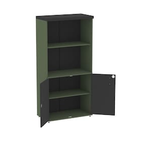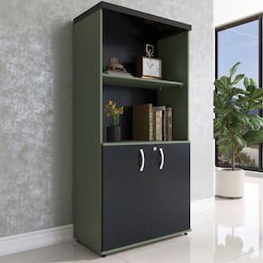 Possui 2 portas pivotantes com fechadura e chave, oferecendo proteção para documentos, materiais e objetos pessoais. Seu interior é versátil, com parte equipada com prateleiras para melhor organização e espaço livre para itens maiores.