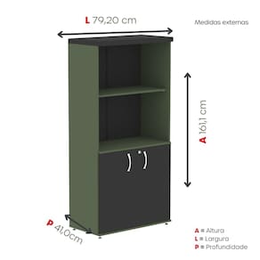Organização interna: parte com prateleiras e parte livre Acabamento da Porta: BP Acabamento da Prateleira: BP Acabamento dos Pés: Polipropileno Ambiente Principal: Escritório Armário Suspenso: Não codigo_ean: 7900288213433 Complexidade da Montagem: Média: pode ser montado por mais de uma pessoa e/ou necessite de maior conhecimento para montagem Cor: Preto/Salvia Cor do Produto: Preto/Salvia Cor Interna: Preto/Salvia Escala de Brilho: Semi-Fosco Escala de Brilho da Porta: Semi-Fosco Escala de Brilho da Prateleira: Semi-Fosco Espessura do Tampo: 40 mm Formato do Armário: Retangular Itens Inclusos: 1 Armário e Kit Ferragens Linha ou Coleção: PE40 Manual de Montagem e Instalação: https://product-hub-prd.madeiramadeira.com.br/454102096/documents/d332b2dc-5484-47d4-a76b-a9ee25732d4e3135960387017551817324759.pdf Marca: Pandin Móveis Material da Porta: MDP Material da Prateleira: MDP Material do Puxador da Porta: Poliestireno Material dos Pés: Polipropileno Material Principal: MDP Necessita Montagem: Sim Orientação do Armário: Vertical Origem do Produto: Nacional Pés Reguláveis: Sim Peso: 40,2241 kg Peso Máximo por Prateleira: 15 kg Possui Espelho: Não Possui Mesa Retrátil: Não Possui Pés: 04 Possui Portas: 02 Possui Prateleiras: 02 Quantidade de Armários: 1 Recomendações de Uso, Manutenção e Limpeza: Utilizar um pano levemente umedecido com água, para finalizar utilizar um pano seco. Sapatas Niveladoras: Sim Sistema de Montagem: Parafuso Suporta Até (kg): 45 kg Tamanho do Armário: Alto (Acima de 150cm) Tipo de Armário: Semi-Fechado Tipo de Dobradiça/Corrediça da Porta: Aço Tipo de Puxador da Porta: Externo Marca: Não Informado