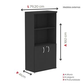 Armário Misto 2 Portas Pivotante 161,1x79,2cm Preto