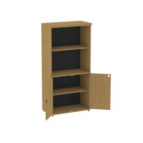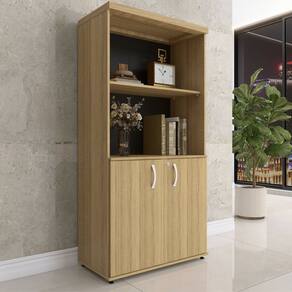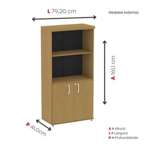 Possui 2 portas pivotantes com fechadura e chave, oferecendo proteção para documentos, materiais e objetos pessoais. Seu interior é versátil, com parte equipada com prateleiras para melhor organização e espaço livre para itens maiores.