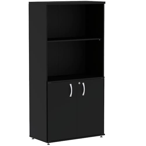 Armário Misto Pe25 Pandin 79,20 Cm (Largura) Em Mdp Liso Preto Com Duas Portas E Prateleira Superior - Marrom