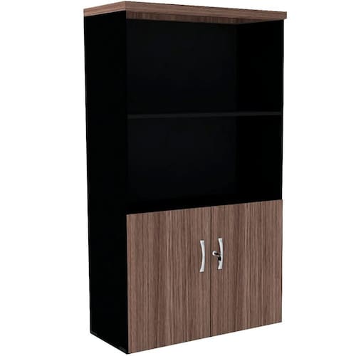 Armário Misto PE40 Pandin 80 cm (largura) em MDP Cor Walnut e Preto Duas portas e Prateleira superior - Marrom