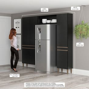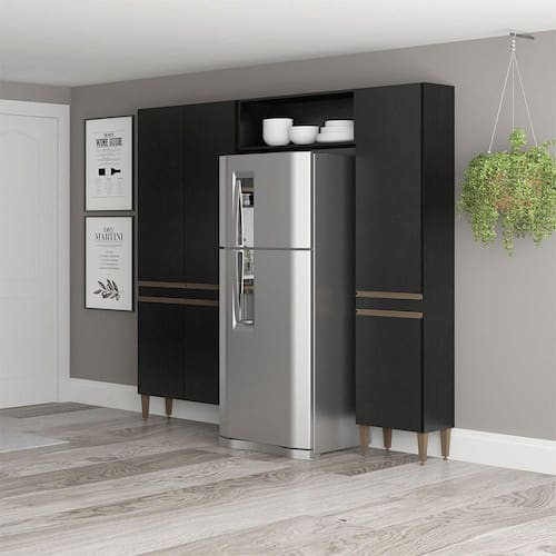 Armario Paneleiro Cozinha Sabrina 80x202cm MDP Preto 0452 Menu Moveis