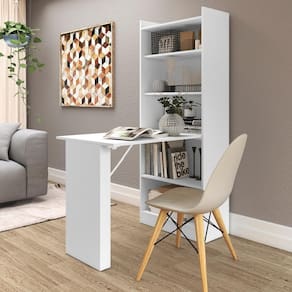As prateleiras, são perfeitas para você guardar objetos, livros, utensílios domésticos e o que mais você preferir. E mais legal a mesa é retrátil e com isso permite que o ambiente fique organizado mesmo quando fora de uso, deixando tudo em ordem em sua casa!