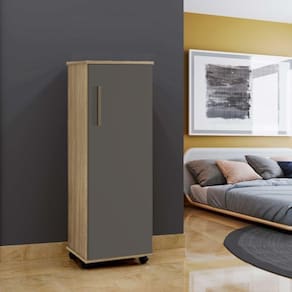 O Armário Multiuso com Rodízio Olindase adapta a todos os espaços, organizando e decorando ambientes como quartos, copa, espaço gourmet e áreas de serviço; Uma porta, ótima divisão interna com quatro prateleiras, acabamento interno branco erodízios;