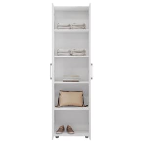As duas portas proporcionam acesso fácil e discreto ao conteúdo interno, enquanto as quatro prateleiras ajustáveis oferecem versatilidade para acomodar itens de diferentes tamanhos. Fabricado com materiais de qualidade, o armário é durável e resistente, garantindo sua utilidade por longos períodos.