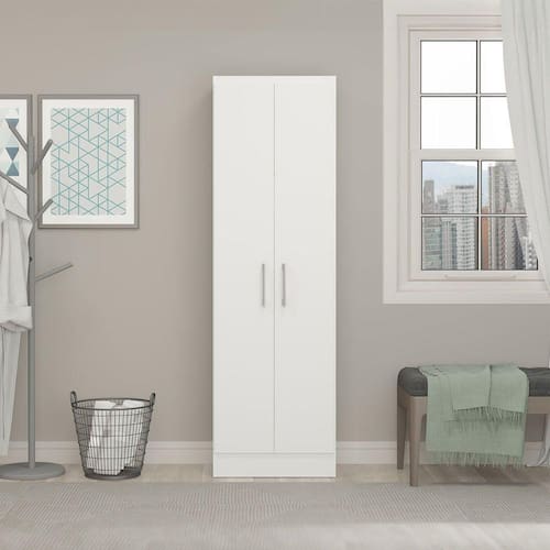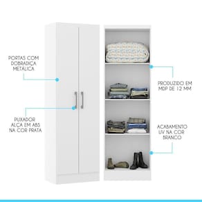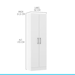 Armário Multiuso 2 Portas 52x170cm Mdp Branco Menu Móveis Branco O Armario Multiuso foi desenvolvido pensando em atender todas as suas necessidades do dia a dia com um design atual, unindo versatilidade, conforto e beleza. Pode ser utilizado como sapateiro no quarto, armario multiuso na area de servico, armario extra na cozinha, guarda objetos da garagem ou onde voce precisar. Possui duas porta e prateleiras internas perfeitas para manter tudo organizado. Produzido com materiais de excelente qualidade, garantindo a sua durabilidade. O melhor em moveis no design atual aliando conforto, qualidade e otimos precos, so na Menu Moveis! Caracteristicas: Produzido em MDP de 12 mm Acabamento UV na cor Branco Portas com Dobradica Metalica Puxadores Alca em ABS na cor Prata