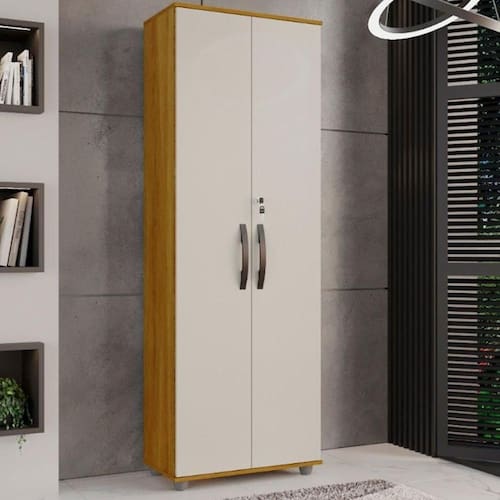 Armário Multiuso 2 Portas Caio Chf Móveis Cinamomo Com Off White Armario Multiuso 2 Portas Caio CHF Moveis O Multiuso Caio e ideal para auxiliar na organizacao do ambiente, oferecendo um amplo espaco para armazenar uma variedade de produtos. Feito em MDP, possui 2 portas de bater com chave para maior seguranca e conveniencia. Conta com 4 prateleiras capazes de suportar ate 15 kg cada. Os puxadores em ABS bronze e os 4 pes adicionam um toque de elegancia. Ele transforma seu espaco em algo verdadeiramente especial. Caracteristicas: Material Principal Moveis; MDP Material Da Porta; MDP Acabamento da Gaveta; nao possui gavetas. Escala da Brilho; Semi-fosco Acabamento da Porta; Pintura Acabamento dos Pes; Pintura Escala de Brilho da Porta; Semi-fosco Tipo de Dobradica/Corredica da Porta; Metalica Acabamento da Prateleira; Pintura Escala de Brilho da Prateleira; Semi-fosco Material da Prateleira; MDP Possui Prateleiras; 04 Tipo de Porta; Bater Possui Portas; 02 Possui Espelho na porta: nao Tipo de puxador; Externo Marca; CHF Moveis Possui Portas; Sim Possui Pes; 04 Possui Iluminacao; Nao Peso Maximo por Prateleira; 5 kg Porta com Chave; Sim Estilo; Moderno Possui cabideiro: Nao Sapatas Niveladoras; Nao Pes regulaveis: nao Cor do Produto; Imbuia Peso Maximo por Gaveta; 5 kg Origem do Produto; Ambiente Principal; Quarto Necessita Montagem; Sim Complexidade da Montagem; Alta: deve ser montado por um montador especializado Sistema de Montagem; Parafusos, dobradicas e Cavilhas.