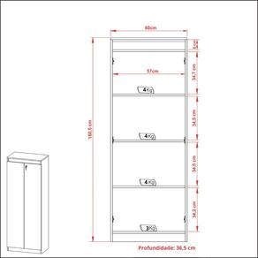Caracteristicas: 2 Portas com dobradicas caneco 2 Puxadores perfil 3 Prateleiras interna Acabamento em BP Acompanha chave Base suporta peso maximo de 3kg Estrutura em MDP 15mm Prateleiras suportam peso maximo de 4kg Sapatas deslizadoras