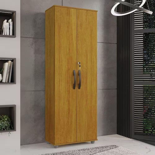 O armário multiuso Caique é um móvel versátil e funcional projetado para oferecer soluções de armazenamento em diversos ambientes da casa. Ele é projetado com prateleiras, permitindo que seja utilizado para armazenar uma variedade de itens. O multiuso possui 2 portas de bater com puxadores externos, 4 prateleiras, uma porta com trinco interno e outra com fechadura de chave! Muitas vantagens, adquira agora mesmo o seu! Acabamento da Porta: Pintura UVAcabamento da Prateleira: Pintura UVAcabamento dos Pés: PlásticoAltura dos Pés: 4 cmAmbiente Principal: Área de ServiçoComplexidade da Montagem: Alta: deve ser montado por um montador especializadoCor: CinamomoCor do Produto: CinamomoCor Interna: CinamomoEscala de Brilho: Semi-BrilhoEscala de Brilho da Porta: BrilhanteEscala de Brilho da Prateleira: BrilhanteItens Inclusos: 1 Armário Multiuso, kit de ferragem e manual de montagemMaterial da Porta: MDPMaterial da Prateleira: MDPMaterial do Puxador da Porta: PolipropilenoMaterial dos Pés: PolipropilenoMaterial Principal: MDPNecessita Montagem: SimOrigem do Produto: NacionalPeso: 32,3 kgPeso Máximo por Prateleira: 10 kgPorta com Fechadura: SimPossui Chave: SimPossui Espelho: NãoPossui Pés: 04Quantidade de Prateleiras: 04 PrateleirasRecomendações de Uso, Manutenção e Limpeza: Limpeza com pano umedecido. Não aplicar lustra móveis.Sapatas Niveladoras: NãoSistema de Montagem: Parafusos e cavilhasSuporta Até (kg): 60 kgTipo de Dobradiça/Corrediça da Porta: MetálicaTipo de Porta: BaterTipo de Puxador da Porta: Externo Marca: CHF MÓVEIS