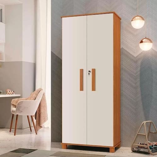 - Multiuso Dallas 100% MDF em chapas de 15mm. - 02 portas com chave e cabideiro em alumínio. - Pés de madeira Maciça - Acabamento em U.V Fosco Informações do produto: Altura: 187 cm Largura: 72 cm Comprimento: 48 cm Marca: Não Informado