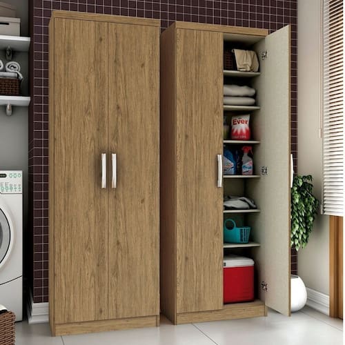 Armário Multiuso Margarida 2 Portas é a opção ideal para organizar roupas ou objetos, ele pode ser utilizado no quarto, na área de serviço ou na despensa. Composto por 2 portas com amplo espaço interno, possuindo 6 prateleiras. A estrutura é produzida em MDP e MDF com revestimento em pintura UV, interno no padrão Trama, que imita tecido, o que garante um móvel resistente e durável. As dobradiças são metálicas para proporcionar maior firmeza na hora de abrir e fechar as portas. Os puxadores são de ABS cromado. Compacto e com um design discreto, o Margarida mantém sua casa ainda mais organizada e completa.