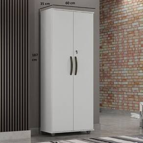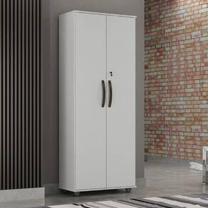 Armario Multiuso 20 Portas Com Chave Caio Branco O Multiuso Caio e ideal para auxiliar na organizacao do ambiente, oferecendo um amplo espaco para armazenar uma variedade de produtos. Feito em MDP, possui 2 portas de bater com chave para maior seguranca e conveniencia. Conta com 4 prateleiras capazes de suportar ate 15 kg cada. Os puxadores em ABS bronze e os 4 pes adicionam um toque de elegancia. Ele transforma seu espaco em algo verdadeiramente especial. Dimensoes: Altura: 187 cm Largura: 60 cm Profundidade: 35 cm Peso: 32,3 kg