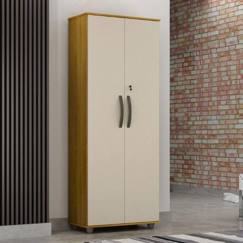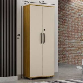 Armario Multiuso 20 Portas Com Chave Caio Cinamomo/off White O Multiuso Caio e ideal para auxiliar na organizacao do ambiente, oferecendo um amplo espaco para armazenar uma variedade de produtos. Feito em MDP, possui 2 portas de bater com chave para maior seguranca e conveniencia. Conta com 4 prateleiras capazes de suportar ate 15 kg cada. Os puxadores em ABS bronze e os 4 pes adicionam um toque de elegancia. Ele transforma seu espaco em algo verdadeiramente especial. Dimensoes: Altura: 187 cm Largura: 60 cm Profundidade: 35 cm Peso: 32,3 kg