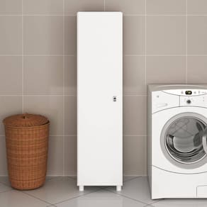 Armário Multiuso 37x144cm Porta e Prateleiras Branco Lavanderia Tecnomobili AM3107