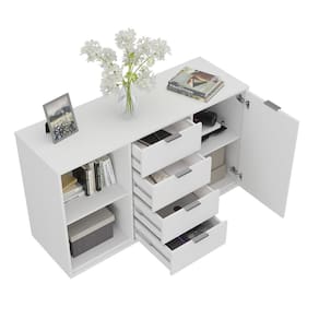 O Armário Multiuso Foscarini é a escolha perfeita para quem valoriza organização, praticidade e estilo em um só móvel. Com 1 porta e 4 gavetas espaçosas, oferece amplo espaço para armazenar livros, acessórios, documentos ou itens do dia a dia, mantendo tudo no lugar. Seus nichos abertos permitem expor objetos decorativos, vasos ou caixas organizadoras, deixando o ambiente ainda mais elegante. Produzido em MDP BP de alta qualidade, possui acabamento branco impecável, estrutura resistente e durável, ideal para diferentes ambientes da casa, como sala, quarto, lavanderia, escritório ou até mesmo o hall de entrada. Fácil de limpar, o armário é prático no uso diário e simples de montar. Um móvel versátil que combina funcionalidade e beleza para transformar seu espaço com muito mais sofisticação. Acabamento da Gaveta: BP Acabamento da Porta: BP Acabamento da Prateleira: BP Ambiente Principal: Escritório Armário Suspenso: Não codigo_ean: 7900288249395 Complexidade da Montagem: Média: pode ser montado por mais de uma pessoa e/ou necessite de maior conhecimento para montagem Cor: Branco Cor do Produto: Branco Cor Interna: Branco Escala de Brilho: Fosco Escala de Brilho da Gaveta: Fosco Escala de Brilho da Porta: Fosco Escala de Brilho da Prateleira: Fosco Espessura do Tampo: 15 mm Formato do Armário: Retangular Gaveta com Chave: Não Itens Inclusos: 1 Armário Multiuso, Kit Ferragens e Manual de Montagem Localização do Nicho: Nicho Lateral Manual de Montagem e Instalação: https://product-hub-prd.madeiramadeira.com.br/710464532/documents/6e3cc619-59ff-4208-b09e-c0b65afef7fc3240116466317588950969298.pdf Marca: Foscarini Material da Gaveta: MDP Material da Porta: MDP Material da Prateleira: MDP Material do Puxador da Gaveta: Alumínio Material do Puxador da Porta: Alumínio Material Principal: MDP Necessita Montagem: Sim Orientação do Armário: Horizontal Origem do Produto: Nacional Peso: 53 kg Peso Máximo por Gaveta: 10 kg Peso Máximo por Prateleira: 15 kg Possui Espelho: Não Possui Mesa Retrátil: Não Possui Nicho: Sim Possui Pés: Não Possui Portas: 01 Possui Prateleiras: 02 Quantidade de Armários: 1 Recomendações de Uso, Manutenção e Limpeza: Limpar com flanela ou pano macio seco, não utilizar produtos abrasivos, desengordurantes, álcool ou solvente. Não expor o produto diretamente à luz solar e à umidade. Sapatas Niveladoras: Não Sistema de Montagem: Fácil e descomplicado, parafusos, minifix e cavilhas. Suporta Até (kg): 120 kg Tamanho do Armário: Baixo (Até 90cm) Tipo de Armário: Semi-Fechado Tipo de Corrediça da Gaveta: Metálica Telescópica Tipo de Dobradiça/Corrediça da Porta: Aço Tipo de Puxador da Gaveta: Externo Tipo de Puxador da Porta: Externo