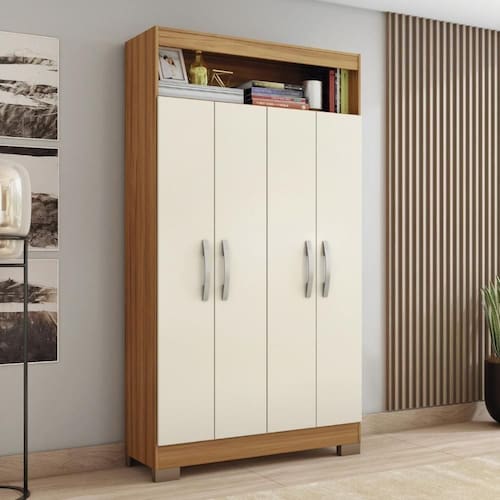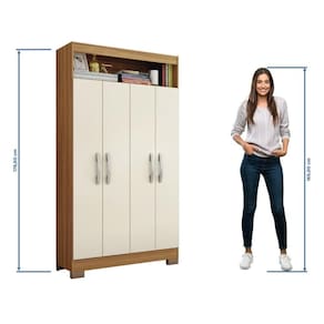 ALTURA (CM): 178,6 | LARGURA (CM): 93,4 | PROFUNDIDADE (CM): 35,10 | MATERIAL: MDP | CONTEÚDO DA EMBALAGEM: 1 Multiuso, Kit Ferragens e Manual de Montagem | Quantidade de Portas: 4 | Cor: Freijó/Off-White