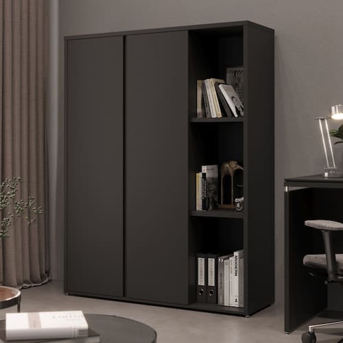 Armário Multiuso Alto 2 Portas 4 Prateleiras com Nicho Oslo - Preto