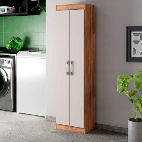 O(a) Armário Multiuso Astori 2 Portas Multiuso Castanho/Off White - Pnr Móveis é produzido em MDP na escala de brilho Fosco, e possui um grau de dificuldade de montagem: Médio.