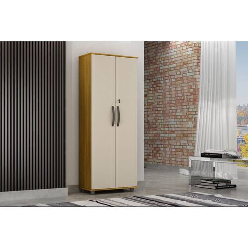 Armário Multiuso - Caio-Cinamomo/Off White - CHF Móveis   O armário multiuso Caio era o que faltava para a sua casa. Produzido em MDP de qualidade, possui 2 portas e 4 prateleiras para que você possa guardar o que for preciso, pois você poderá utilizá-lo em qualquer cômodo da casa, como quarto, lavanderia, banheiro e onde você mais precisar, deixando tudo sempre à mão. Seu design moderno permite que ele combine com diferentes estilos de decorações, fazendo com que o seu ambiente fique organizado. Além disso, ele é ideal para quem possui pouco espaço no ambiente, pois é um armário completamente compacto que deixará a sua casa ainda mais funcional.   Fazem parte do anúncio: 1 Armário Multiuso - Caio - CHF Móveis Obs: Objetos de decoração não fazem parte deste anúncio.   Particularidades do Armário: Características: - Estrutura em MDP; - Puxadores ABS bronze; - Com pés; - Porta com chave; - 4 prateleiras; - Acabamento com pintura UV brilhante;   Dimensões do Armário: Altura: 1,87 metros Largura: 60 centímetros Profundidade: 37,5 centímetros   Informações Importantes: - Produtos podem apresentar diferenças de tonalidades entre a foto na tela e o produto real, devido a calibração de cor de tela.  - Limpar com flanela ou pano macio. Não utilizar álcool. Não utilizar produtos abrasivos ou corrosivos. - Nós prezamos pela qualidade da entrega em primeiro lugar, trabalhamos com transportadoras altamente selecionadas e os melhores materiais de embalagem. - A montagem é de total responsabilidade do comprador. Antes de comprar, verifique o espaço disponível para a montagem. - Certifique-se de que o produto caiba em elevadores e vãos de escadas, não fazemos içamentos ou desmontagens de produtos. Quaisquer despesas deste tipo ficam a cargo do cliente.