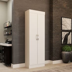 O(a) Armário Multiuso Clean 2 Portas Branco - Loja é produzido em MDP na escala de brilho Fosco, e possui um grau de dificuldade de montagem: Médio.