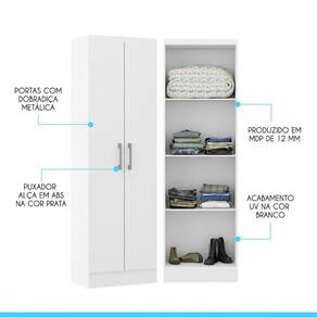 Armário Multiuso Com 2 Portas 52x170cm Mdp 3000 Menu Móveis Branco O Armario Multiuso foi desenvolvido pensando em atender todas as suas necessidades do dia a dia com um design atual, unindo versatilidade, conforto e beleza. Pode ser utilizado como sapateiro no quarto, armario multiuso na area de servico, armario extra na cozinha, guarda objetos da garagem ou onde voce precisar. Possui duas porta e prateleiras internas perfeitas para manter tudo organizado. Produzido com materiais de excelente qualidade, garantindo a sua durabilidade. O melhor em moveis no design atual aliando conforto, qualidade e otimos precos! Caracteristicas: Produzido em MDP de 12 mm Acabamento UV Portas com Dobradica Metalica Puxadores Alca em ABS