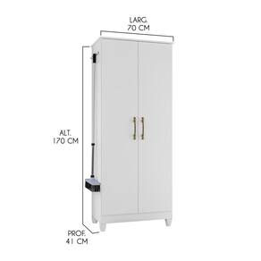 O multiuso Jade é um móvel versátil podendo ser utilizado para organizar áreas de serviço e outros ambientes da casa. Possui ganchos para pendurar objetos como vassouras e bolsas, um nicho espaçoso para objetos altos como escadas e aspiradores de pó, além de 5 nichos menores para organizar produtos de limpeza e utensílios. Seus pés facilitam a limpeza do ambiente, garantindo praticidade e organização eficiente. CARACTERÍSTICAS TÉCNICAS: - Produzido em MDP; - Ganchos Metálicos; - 2 Portas de Giro com Dobradiças Metálicas; - Puxadores na Cor Bronze; - Pés em PVC. INFORMAÇÕES TÉCNICAS: Altura: 170 cm Largura: 70 cm Profundidade: 41 cm Peso: 38,9 kg INFORMAÇÕES ADICIONAIS: - Não realizamos a montagem do móvel e não nos responsabilizamos por ela. Verifique o produto antes de montá-lo. Produtos danificados na montagem não serão trocados. Montagem e instalação são por conta do comprador. - As imagens decorativas são ilustrativas e podem conter itens não inclusos. As cores do produto podem variar conforme o monitor, iluminação ou percepção visual. - Limpeza: Use um pano macio seco ou levemente umedecido com água. Não utilize materiais abrasivos como palha de aço ou objetos cortantes. - Garantia de 3 meses contra defeitos de fabricação conforme o Código de Defesa do Consumidor.