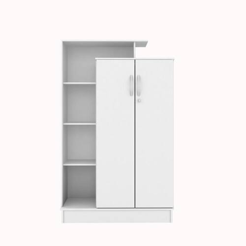 Versatilidade é a principal característica do armário Elite. A disposição das prateleiras em seu exterior e interior sugerem usabilidade permitindo acomodar pequenos e grandes objetos de forma organizada. Este armário foi produzido em MDP e revestido em pintura UV, a fim de apresentar durabilidade e resistência. Além disso, este móvel é composto por duas portas que acompanham fechadura e chave.