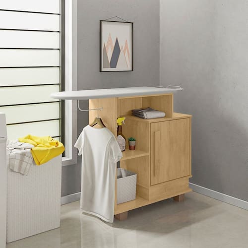 Esta linda peça vai incrementar sua área de serviço com sua beleza , praticidade e segurança na hora de passar roupas. Contem puxadores de MDF, dobradiças metálicas, cabideiro e porta ferro em alumínio e tecido antitético. Acabamento da Porta: Pintura UV Acabamento da Prateleira: Pintura Acabamento dos Pés: Pintura Acompanha Manual de Instalação: Sim Altura dos Pés: 5 cm Altura Máxima dos Pés: 5.0000 Ambiente Principal: Área de Serviço codigo_ean: 7900288254573 Complexidade da Montagem: Média: pode ser montado por mais de uma pessoa e/ou necessite de maior conhecimento para montagem Cor: Cinamomo/ Branco Cor da Estrutura: Marrom Cor do Produto: Cinamomo/ Branco Cor Flex: Não Cor Interna: Cinamomo Escala de Brilho: Fosco Escala de Brilho da Porta: Fosco Escala de Brilho da Prateleira: Fosco Espessura da Chapa: 15 mm Fita Integrada: Não Formato do Espelho: Não Itens Inclusos: 1 Armário, Kit Ferragens e Manual de Montagem Linha ou Coleção: Havaí Manual de Montagem e Instalação: https://product-hub-prd.madeiramadeira.com.br/108375242/documents/8732042f-3345-460f-9029-7d5844fc245f3250481365917592537290786.pdf Marca: RV Móveis Material da Porta: MDF Material da Prateleira: MDF Material do Fundo: MDP Material do Puxador: MDF Material do Puxador da Porta: MDF Material dos Pés: Plástico Material Principal: MDF/MDP modular: Não Montagem Flex: Não Necessita Montagem: Sim Origem do Produto: Nacional Pés Reguláveis: Não Pés Removíveis: Não Peso: 27 kg Peso Máximo por Prateleira: 3 kg Pintura: Sem Pintura Porta com Fechadura: Não Possui Cabideiros: 01 Possui Chave: Não Possui Espelho: Não Possui Nichos: 02 Possui Pés: 04 Possui Portas: Sim Possui Suporte para Vassoura: Não Possui Tábua: Sim Possui Tulha/Cesto: Não Possui Vidro: Não Prateleiras Removíveis: Não Quantidade de Prateleiras: 01 Prateleira Quantidade do Produto: 1 Recomendações de Uso, Manutenção e Limpeza: Pano úmido Resistente à Chuva: Não Sapatas Niveladoras: Não Sistema de Montagem: Parafusos, Minifix e cavilhas Suporta Até (kg): 30 kg Tábua é Dobrável: Não Tamanho do Produto: 92 x 118,5 x 36 Tipo de Armário Multiuso: Tábua de Passar Tipo de Dobradiça/Corrediça da Porta: Metálica Tipo de Porta: Bater Tipo de Puxador da Porta: Externo