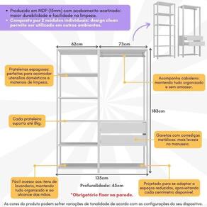 Dimensões do Produto Montado - Altura: 183cm | Largura: 135cm | Profundidade: 45cm