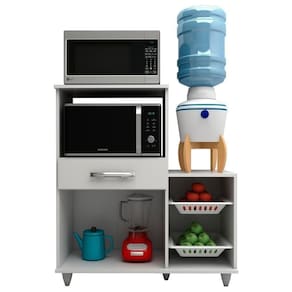 Além disso, possui 1 Gaveta e 2 Portas que protegem os compartimentos interno, perfeitos para guardar louças, mantimentos ou até mesmo os seus eletrodomésticos. Para completar a lista de adjetivos desse armário multi, ele ainda conta com um nicho para micro-ondas ou forno elétrico. Ah, a qualidade também é inquestionável, pois é fabricado em MDP/MDF com revestimento BP e fita de borda, o que confere maior resistência e durabilidade ao produto. Conta ainda com dobradiças metálicas, puxadores cromados, cestos da fruteira e pés em PVC e também gaveta com corrediças metálicas.