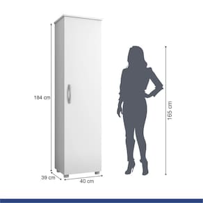 Armário Multiuso Jasmim Branco 1 Porta Kaiki Móveis Branco Armario e mais que um item indispensavel para organizacao, e um acessorio que tambem faz parte da decoracao do ambiente. Este armario e uma otima opcao para guardar os objetos de sua area de servico com facilidade. Caracteristicas: Armario Multiuso Jasmim Material da estrutura: MDP Acabamento: Pintura Fosco Peso maximo que suporta: 55kg Recomendacoes de manutencao: Limpar com flanela limpa e seca. Nao usar produtos abrasivos. Necessita montagem: Sim Numero de Porta: 1 Numero de Gaveta: Nao Possui Numero de Prateleira: 4 Material do puxador: Plastico Material dos Pes: Plastico Altura dos Pes: 5cm Material da corredica: Nao Possui Material da dobradica: Metalica Tipo de porta: Bater