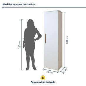 Características Quantidade de Prateleiras 04 Prateleiras Quantidade de Portas 1 Porta Quantidade de Gavetas 0 Gavetas Possui Tulha/Cesto Não Possui Suporte para Vassoura Sim Cor Branco Tipo de Porta Bater