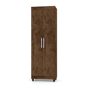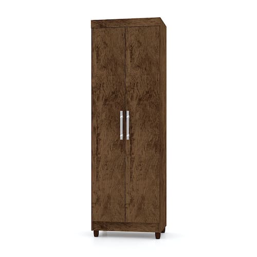 Este armário conta com duas portas que abrem para revelar um espaço interno bem distribuído, com prateleiras ajustáveis que permitem acomodar itens de diferentes tamanhos.