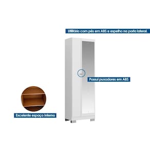 Armário Multiuso Lavanderia 547 c/ 2 Portas (1 c/ Espelho) c/ Pés Branco - Carraro