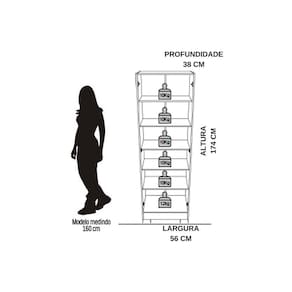 Dimensões(Cm): Comprimento(Profundidade): 38cm x Largura: 56cm x Altura: 174cm