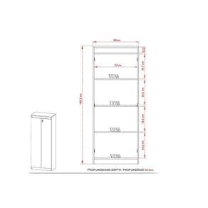 Tipo de Portas: - Portas De Bater Quantidade de Portas: - 2 Portas de Abrir Tipo de Dobradiças: - Dobradiças Metálicas Quantidade de Prateleiras: - 4 Prateleiras