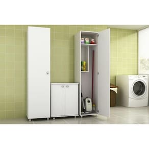 Quantidade de Portas - 1 Porta de Abrir Tipo de Puxador - Puxador em ABS / PVC Cromado Quantidade de Prateleiras - 1 prateleira - 2 Prateleiras Quantidade de nichos - 1 Nicho Tipo dos Pés - Pés com Rodízios