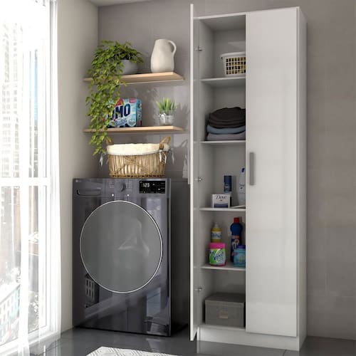 O(a) Armário Multiuso Malta 2 Portas 4 Prateleiras Branco Brilho - Loja é produzido em MDP na escala de brilho Brilho, e possui um grau de dificuldade de montagem: Médio.