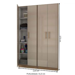 O(a) Armário Multiuso Malta 4 Portas 8 Prateleiras Acácia Madeirado/Reflecta Brilho - Loja é produzido em MDP na escala de brilho Brilho, e possui um grau de dificuldade de montagem: Médio.