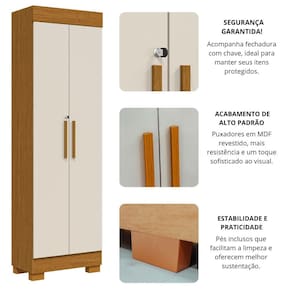 Com 2 portas e 4 prateleiras, o Marrocos é ideal para organizar diversos ambientes da casa. Seu puxador em MDF revestido garante um toque moderno, enquanto a fechadura com chave oferece segurança extra para seus pertences. Um móvel versátil que une funcionalidade e elegância.
