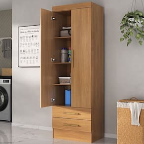 O(a) Armário Multiuso Modulare 2 Portas 2 Gavetas Cinamomo - Loja é produzido em MDP na escala de brilho Fosco, e possui um grau de dificuldade de montagem: Médio.