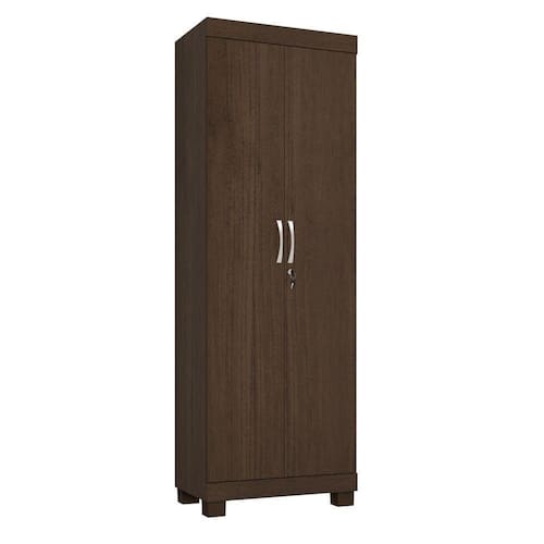 Dimensões Armário Altura: 186 cm Largura: 61 cm Profundidade: 35 cm Características: Modelo: Mucuri Ambiente: Diversos Cor: Cacau Escala de Brilho: Fosco Pintura: UV Material Principal: MDP Suporta até Kg: 45 Kg Possui Porta: Sim Tipo de Porta: Bater Tipo de Puxador da Porta: Externo Material do Puxador da Porta: Plástico Quantidade de Portas: 02 Possui Chave: Sim Possui Prateleira: Sim Quantidade de Prateleira: 05 Peso Máximo por Prateleira: 6 Kg Material da Prateleira: MDP Possui Pés: Sim Material dos Pés: PVC Quantidade de Pés: 04