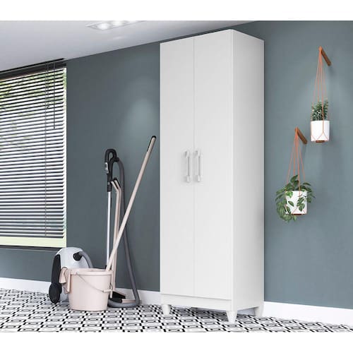 Características Estrutura em MDP de 12mm. Pintura em acabamento UV. 02 Portas articuladas com dobradiças metálicas. Puxadores na cor bronze. Prateleiras internas com amplo espaço. Cantoneira de metal para fixação na parede. Pés em PVC.