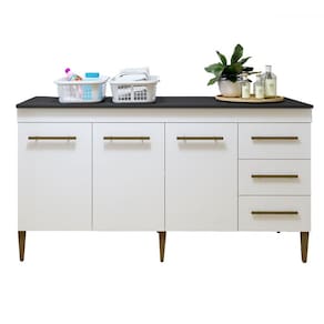 O(a) Armário Multiuso Nova Iguaçu 3 Portas 3 Gavetas Branco - Kaki Móveis é produzido em MDP na escala de brilho Fosco, e possui um grau de dificuldade de montagem: Médio.